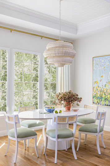 In a fresh twist on traditional entertaining spaces, our Shumard Project provides an incredible backdrop for hosting family and friends. The clients exchanged a formal dining space for a refined sitting room, and reserved a beautifully designed breakfast room for intimate family meals. Once a rustic farmhouse design, The Collective transformed this home with the addition of luxurious finishes, custom furnishings, and several pieces of commissioned artwork.